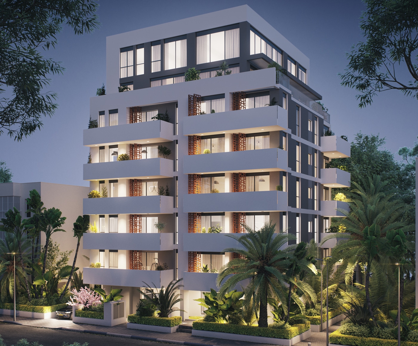 • Integration of design elements in the front of the building