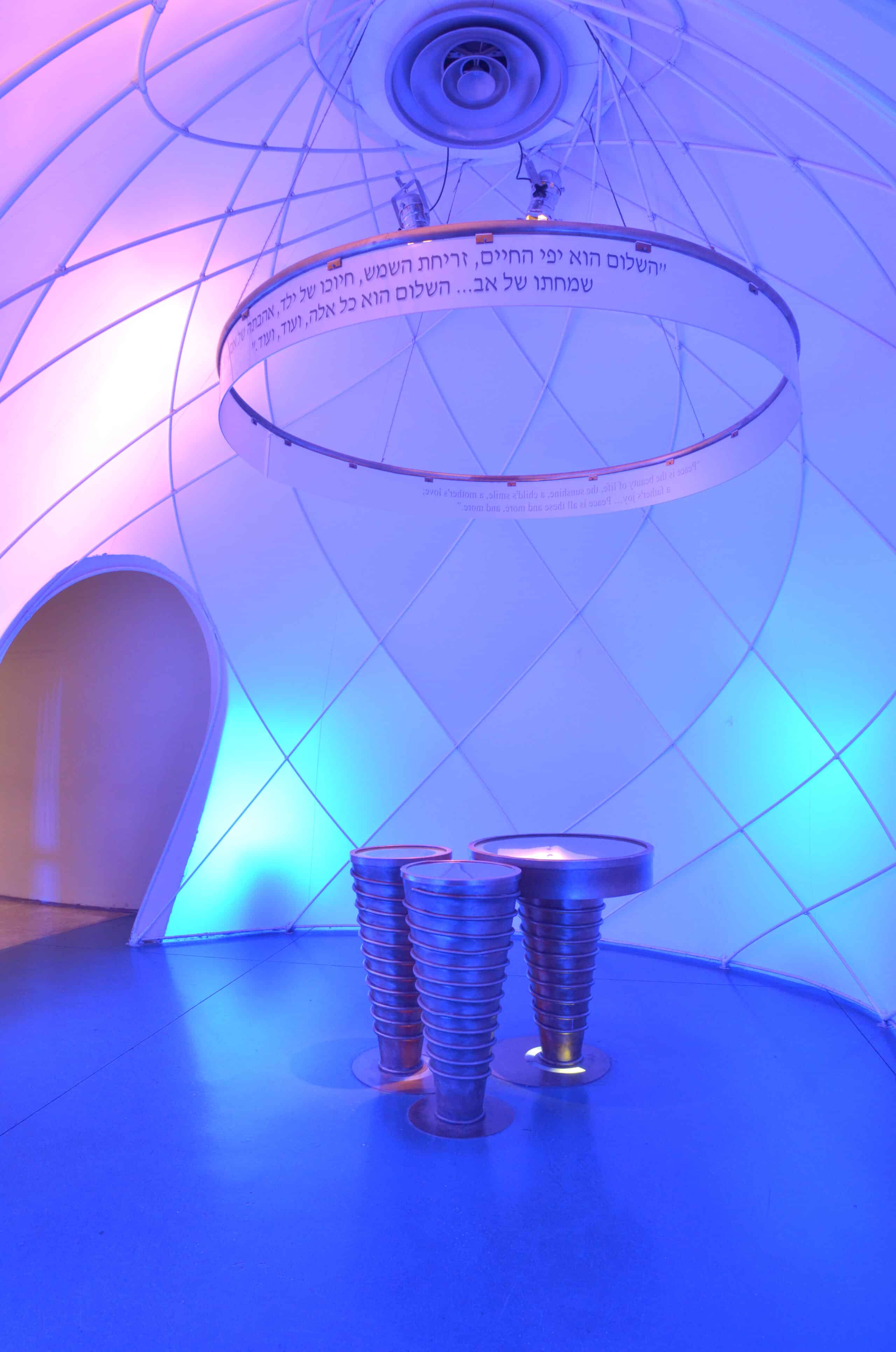 The concert hall is equipped with rotating walls and the hall ceilings can be lowered and raised as needed. The entire building is controlled and run by a central computerized system.