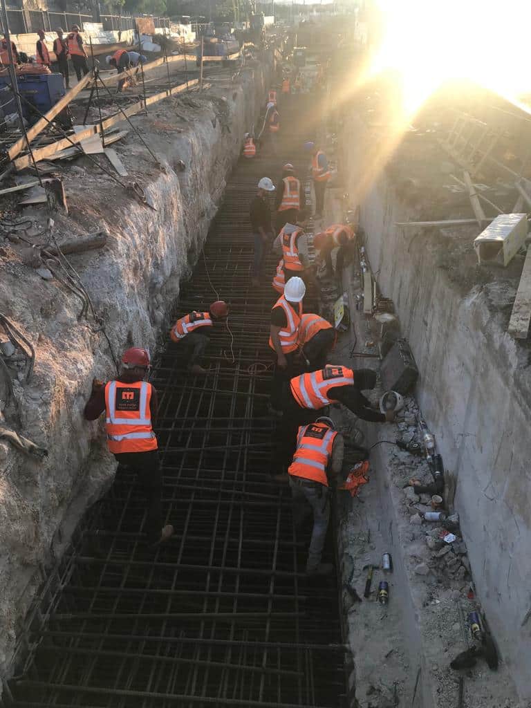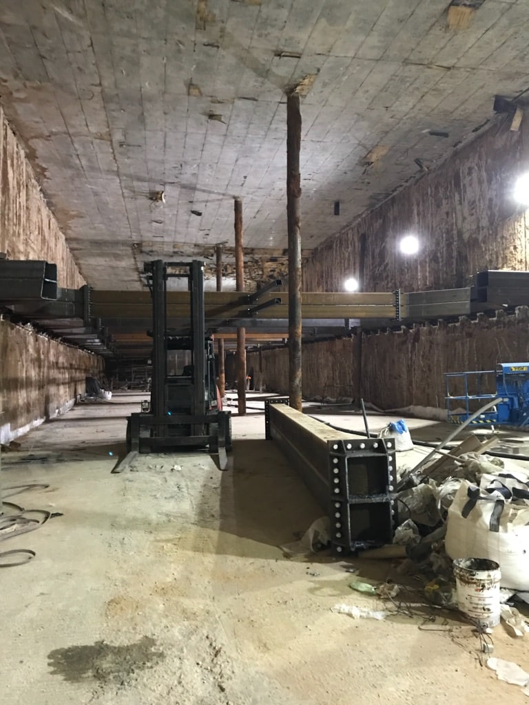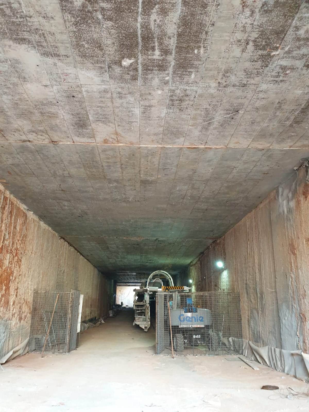 The structure was constructed using the cut & cover method (C&C). It included inter-alia heavy structural construction, groundwater pumping, infrastructure relocation, and excavation to the floor level employing the top-down method.