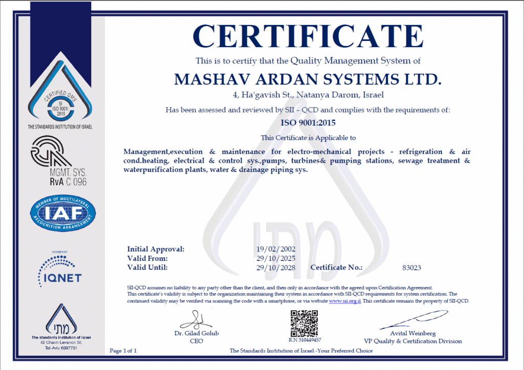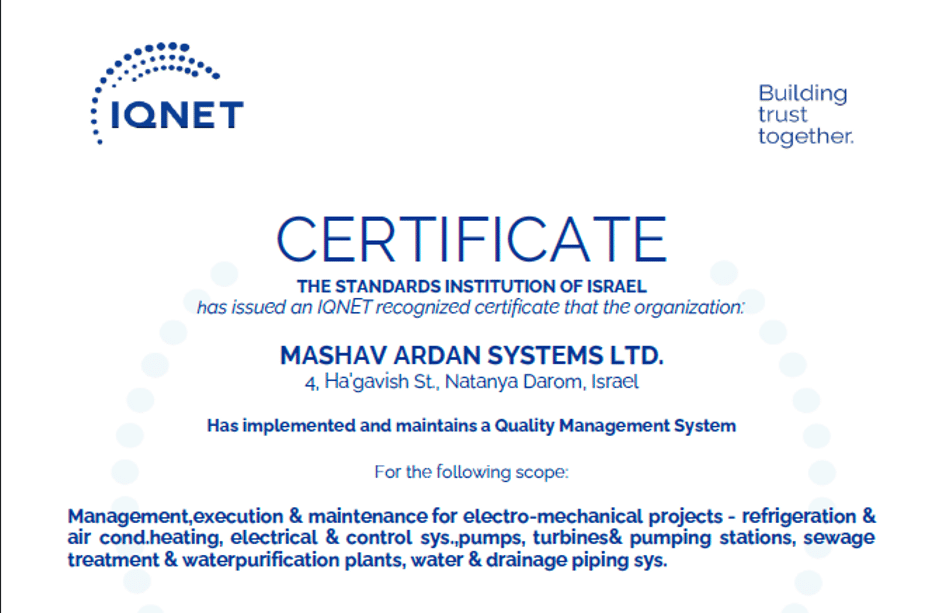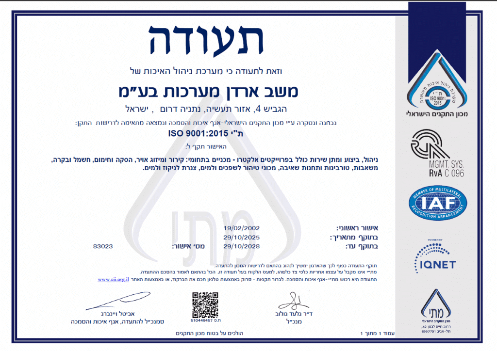 תעודת הסמכה ISO 9001 – מכון התקנים הישראלי
