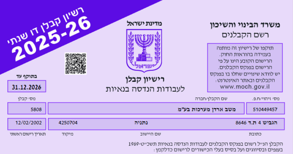 רישיון קבלן 2025-2026
