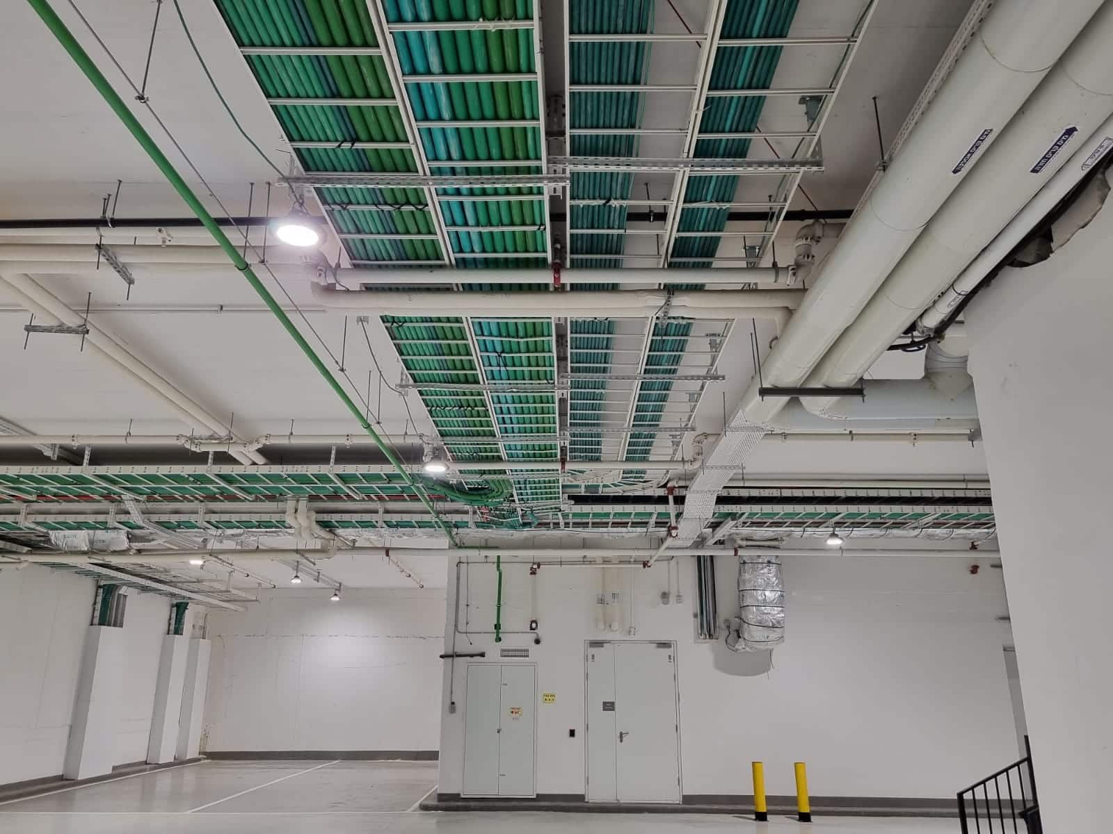 התקנה של מרכז אנרגיה בחניונים עם משאבות מבוקרות, המספקות מים קרים וחמים לכל הקומות.