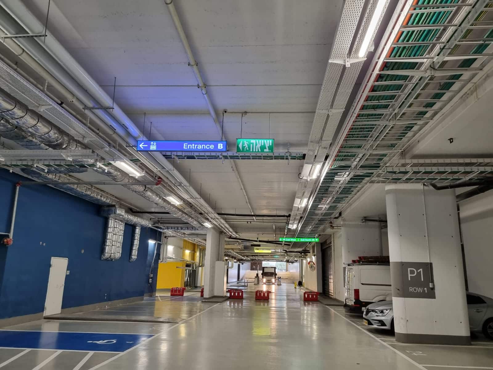 התקנת מפוחי אוורור ושחרור עשן בחניונים, עם משתיקי קול, שמנוהלים על ידי מערך דו-תכליתי CO ושחרור עשן.