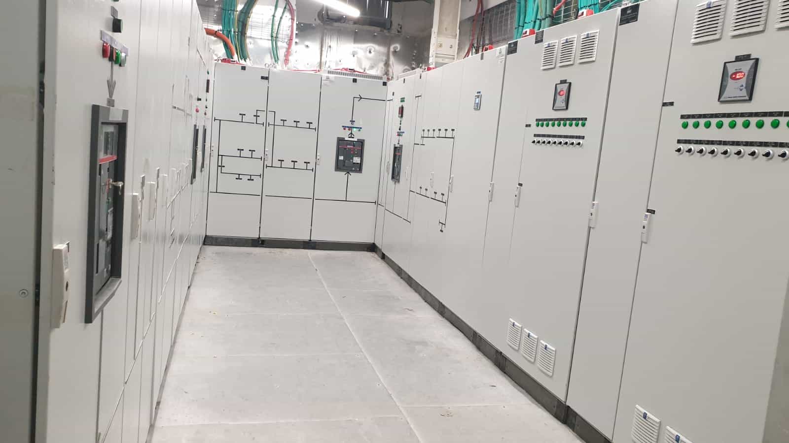 בעבודות החשמל הותקנו חדרי שנאים הממוקמים בקומת קרקע וגג, עם חיבור למתח גבוה (33KV) ומתח נמוך. הוקמה מערכת גיבוי עם גנרטור בקומת הגג, והותקנה מערכת בקרה לניהול צריכת החשמל.