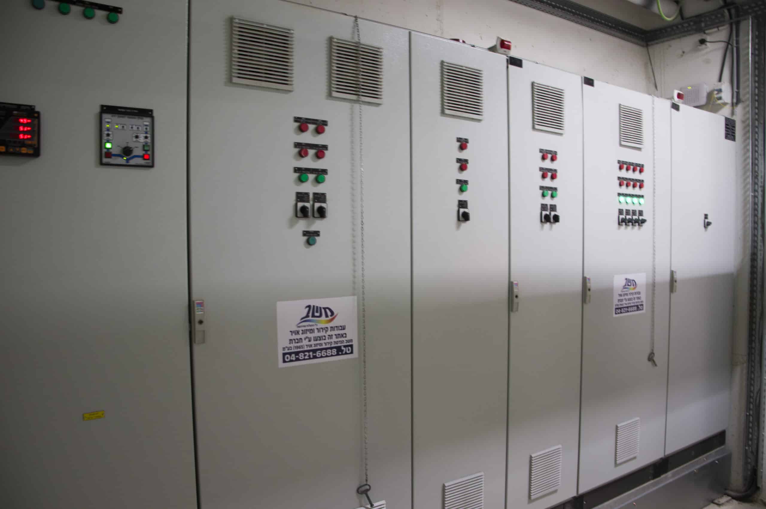 מבנה תחמ"ש: מערכת מיזוג VRF עם לוחות חשמל ומפוחים.