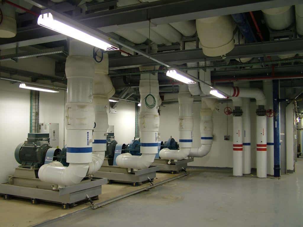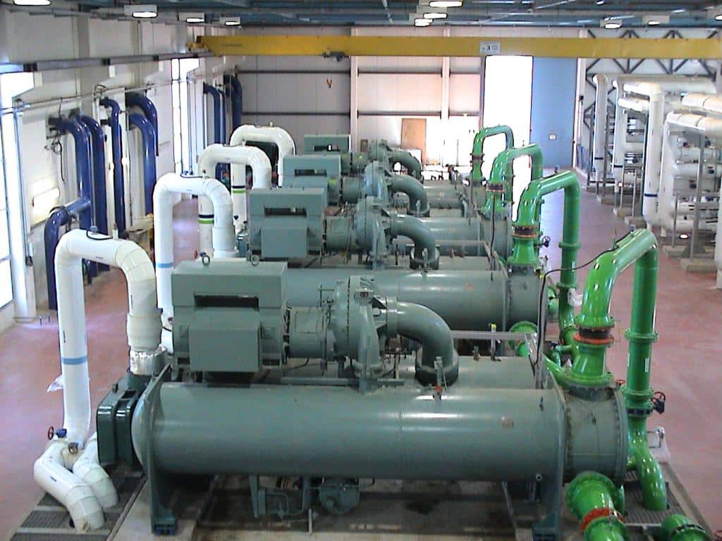 צ'ילרים צנטריפוגליים: אספקה, התקנה והפעלה של 7 יחידות צ'ילרים תוצרת YORK בתפוקת קירור כולל של 42 מגה-וואט (12,000 טון קירור), 4 צ'ילרים בתפוקה של 1500 טון קירור כל אחד ו-3 צלילים בתפוקה של 2000 טון קירור כל אחד. כל הצ'ילרים הוגדרו לפעול ביעילות גבוהה במיוחד עם מקדם יעילות NPLV 0.6 ומנועים במתח נקוב של 6600 וולט.