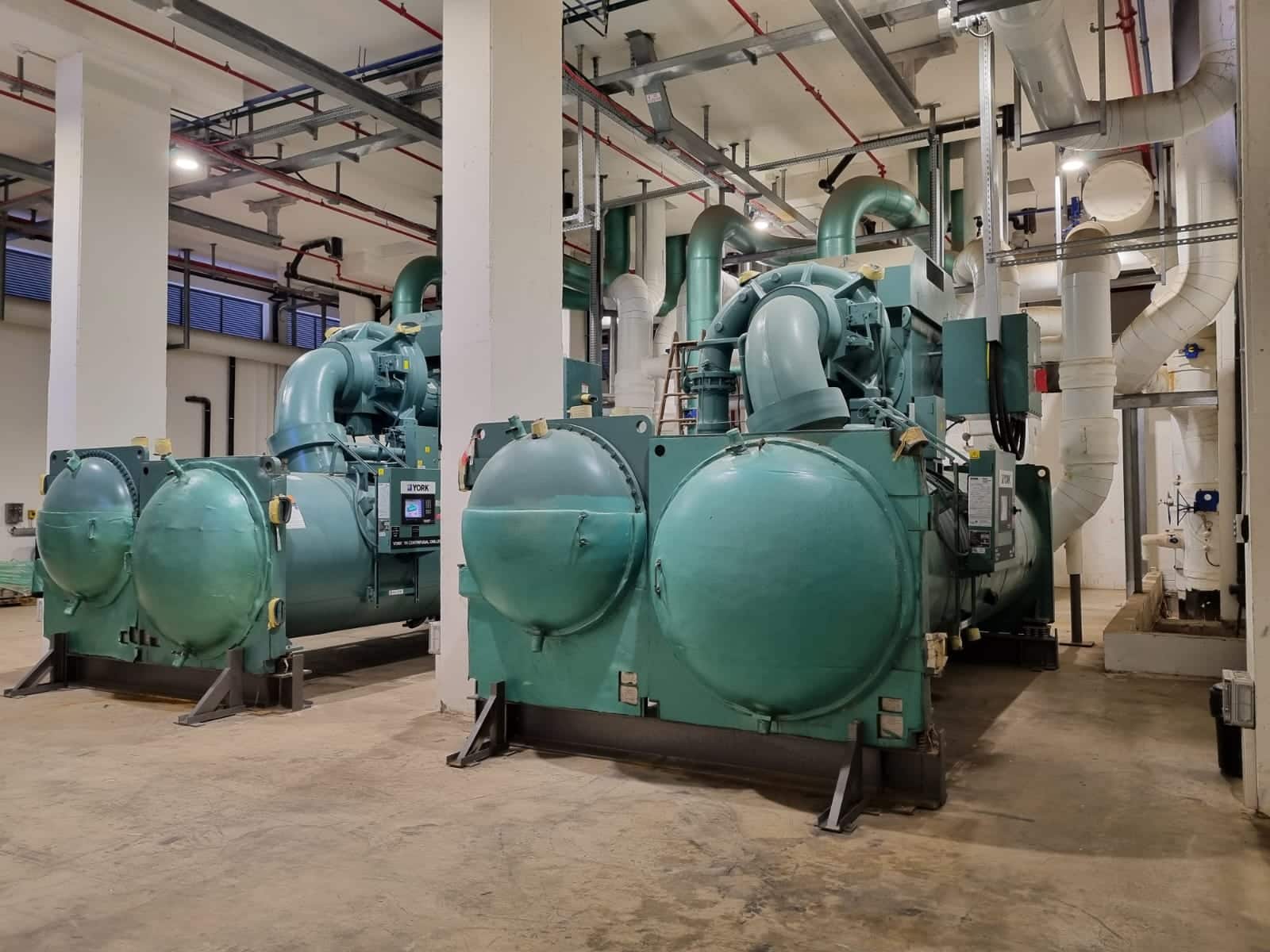 התקנה של שני מקררי מים מתח גבוה תוצרת YORK בתפוקה של 2000 טון קירור כל אחד.